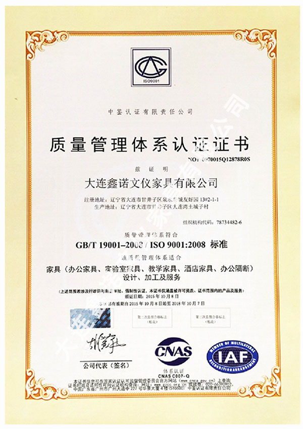 大連鑫諾文儀家具有限公司總部位于中國的北方明珠-大連。公司以教育設(shè)備,家具裝飾裝修為主導(dǎo)產(chǎn)業(yè)。經(jīng)過近10年的發(fā)展,又涉及科學(xué)實(shí)驗(yàn)設(shè)備工程、教育裝備工程、圖書館裝備工程、教學(xué)儀器等各類家具的生產(chǎn)與研發(fā)。 公司建設(shè)了大型生產(chǎn)基地,總面積超過一萬平方米,員工150多人。經(jīng)全體員工多年的不懈努力,公司已發(fā)展成為在大連、沈陽擁有多家公司和生產(chǎn)基地,并在國內(nèi)擁有多家聯(lián)營公司的科、工、貿(mào)為一體的綜合性實(shí)業(yè)企業(yè)。 鑫諾家具實(shí)業(yè)已通過ISO9001:2000國際質(zhì)量管理體系認(rèn)證,ISO14001:2004國際環(huán)境管理體系認(rèn)證。公司堅(jiān)持走品牌發(fā)展路線。旗下產(chǎn)品和服務(wù)有“家具名牌”“家具著名品牌”等多項(xiàng)榮譽(yù)。其品牌大部分已遍布東北三省、山東省等地,涉及十幾個(gè)行業(yè)等上萬家企業(yè)單位和高校